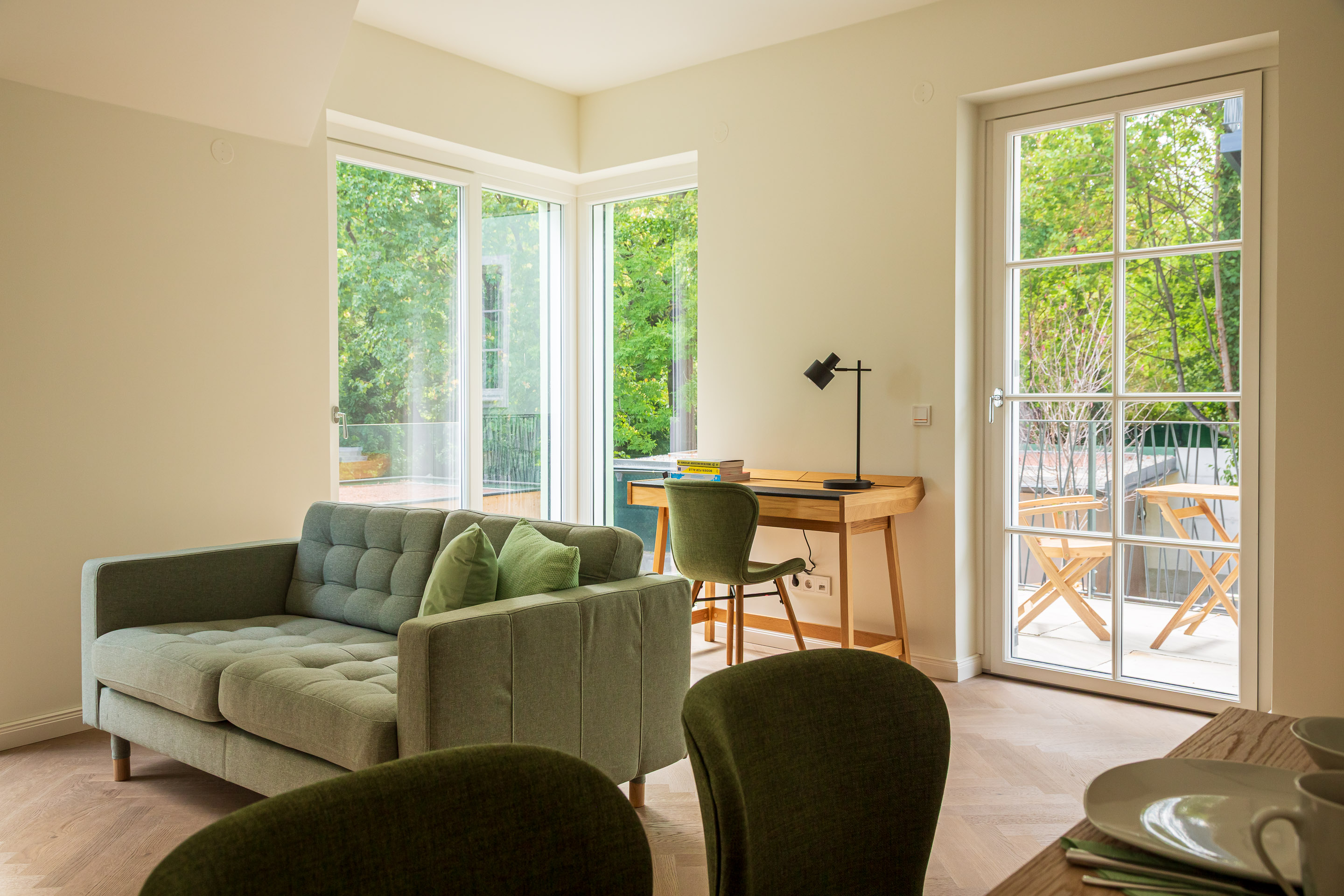 Suite 4Durchdacht, charmant von Grün gerahmt.