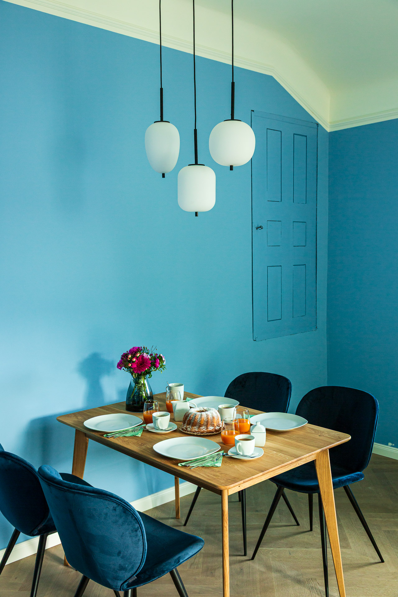 Zwei Schlafzimmer, drei Arbeitsbereiche und ein spektakuläres Turmzimmer mit Blick über Garten und Dachlandschaft.
